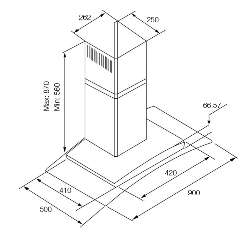 Máy hút mùi D’mestik IBER 90 N có 900 x 500 x (560 / 870) mm thích hợp với những không gian bếp rộng và các loại bếp có kích thước bề mặt khoảng trên 80 cm. Đây là dòng máy hút mùi kính cong hoạt động bởi động cơ tuabin đôi hút với công suất 650m3/h được chia làm 3 tốc độ hút khác nhau dễ dàng điều chỉnh công suất hút phù hợp với từng món ăn khác nhau. Với những món ăn nhiều mùi như xào rán thì bạn có thể chọn công suất hút lớn nhất ở cấp độ 3 còn với những món nhẹ mùi như món luộc, nấu thì bạn chọn công suất hút ở mức độ 1, 2 như thế bạn có thể sử dụng hiệu quả công suất hút của máy.